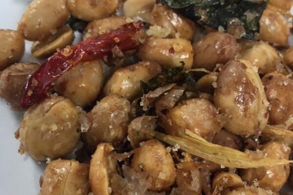 Praised as being ‘the best snack in the world’ by a member of our team (and they should know, having seen a fair amount of it!), this recipe for Khmer nuts is a local recipe direct from Thary, who helps run our office in Cambodia, and it tastes amazing. The humble peanut is given a fragrant, spicy make-over of Asian flavours including lemongrass, kefir lime, garlic and chilli. Chicken powder is added for savory undertones, but if there are vegetarians likely to nibble on them you can leave that ingredient out, or perhaps substitute a little vegetable bouillon powder (worth an experiment!). Put a bowl-full of these down in any room and they probably won’t be there for long!