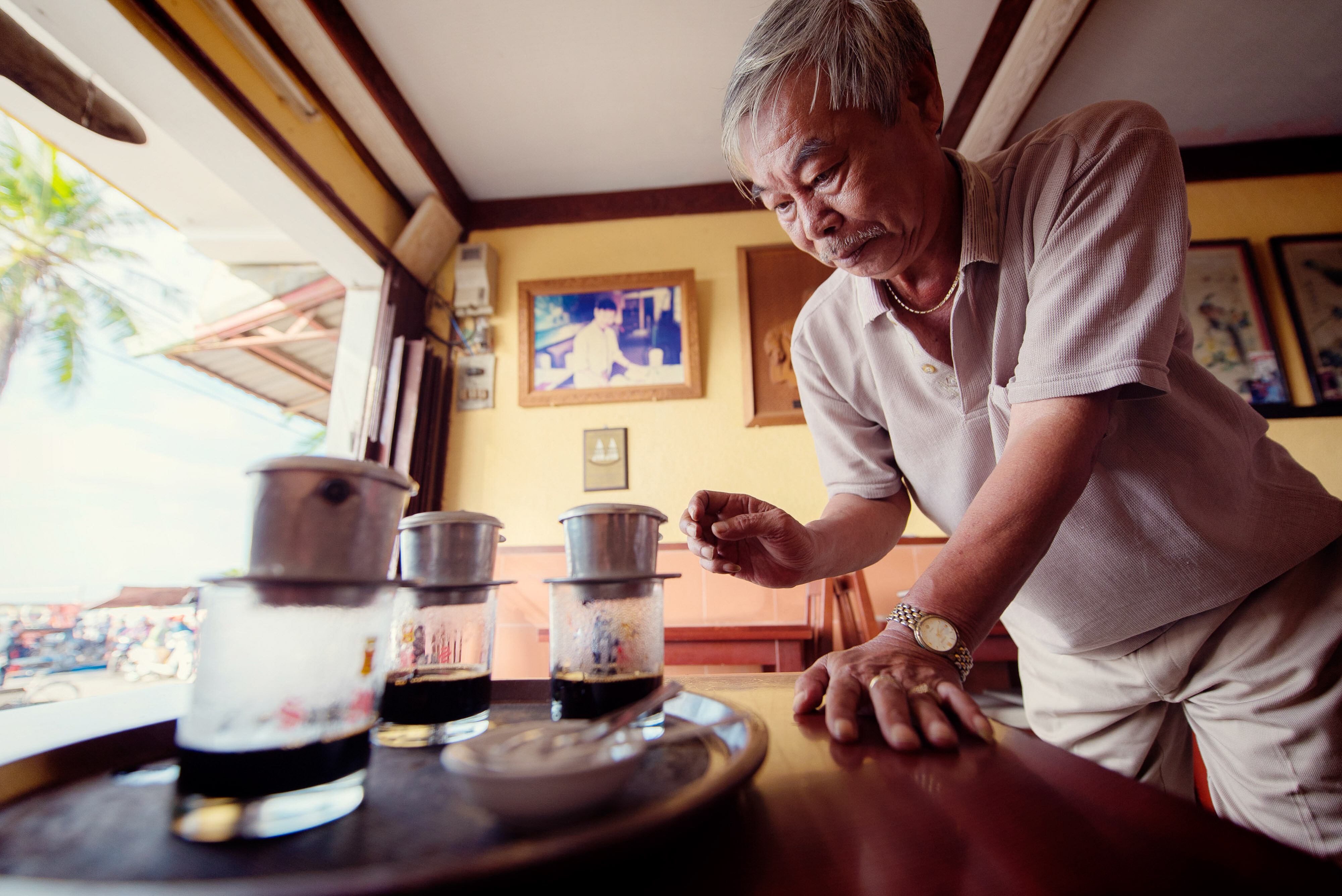 What’s so special about an iced coffee, you may well ask? Have you ever had one made with condensed milk? Vietnamese iced coffee combines hair-curlingly strong espresso-style coffee with syrupy-sweet condensed milk, served over ice which both cools and gently dilutes the drink as you go along. It is exactly what you crave on humid nights in Da Nang when you don’t fancy a beer; a caffeine-infused milkshake, cold enough to give you an ice-cream headache and keep you awake through the stifling evening heat!