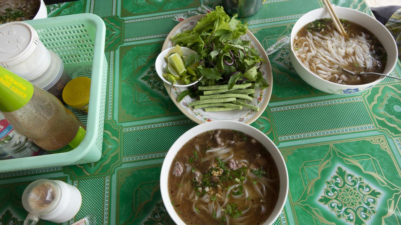 Few dishes offer more immediate comfort than a steaming bowl of noodle soup. From pho in Vietnam to Japanese ramen, you can rely on them to fill you up and give you a virtual hug-in-a-bowl. The Lao versions of these noodle dishes are infused with the country’s distinctive flavours: the broths are light and savoury, poured over thick, chewy rice noodles, thin spikes of julienned vegetables, oodles of those ubiquitous fresh herbs, morsels of slow-cooked meat and possibly even cubes of duck blood jelly (which, although it may sound a little challenging, has a soft texture like tofu). Served alongside are bowls of powerfully concentrated roasted chilli and other seasonings, which you can add as you wish to create different blends of salty, sweet and spicy with each mouthful. If you like it really hot, try the whole green chillies dipped in shrimp paste as an accompaniment; an experience which, Aaron warns, can be ‘intense’!