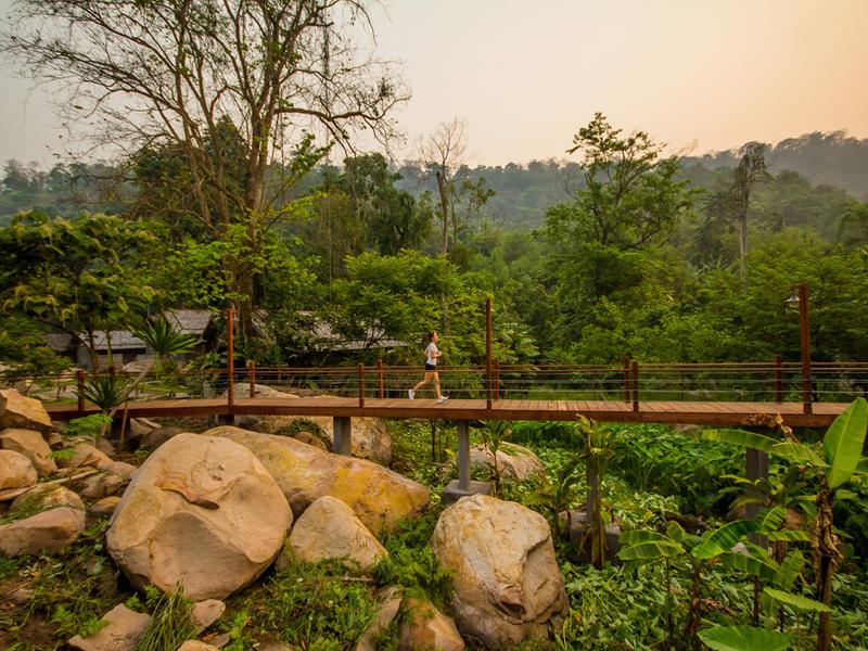 How you spend your days at Nam Kat Yorla Pa is entirely up to you and your energy levels. Explore at a gentle pace with wanders along rope walkways through the trees, or treks at ground level, keeping your senses alert for signs of birds and wildlife. Cycle to nearby villages, mountain bike through bamboo forests or hike to nearby Nam Ket waterfall to watch people abseil through the cascades! Once back at the resort, unwind on a private pool terrace overlooking the forest, listening to the calming sound of the river below. Enjoy deep relaxation with traditional Laotian massages, lean into cleansing sauna sessions, and connect with your surroundings during early morning yoga.