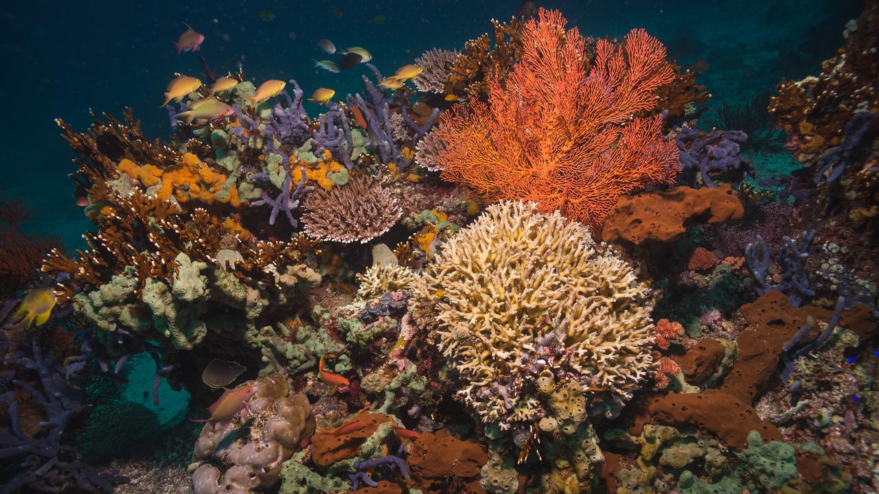 Beneath the castaway northern coastline of the island, you’ll bump into the famous ‘Meno Wall’, guaranteed to bring all of your Finding Nemo fantasies to life. Here, hawksbill and leatherback turtles idle peacefully past, giant gorgonian fans hang amongst colourful corals, and blue-spotted stingrays slip and slide through the seas.