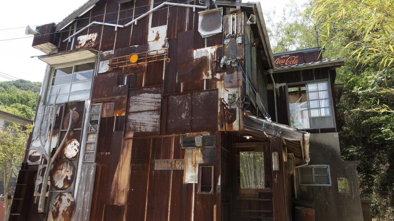 Thank goodness for the electric bikes - Naoshima is extremely hilly! It was a lot of fun zooming about, and as we neared the top of the hill coming into the Honmura area we were met with the intriguing sight of the first of the art houses, Haisha by Shinro Ohtake, which used to belong to a dentist.