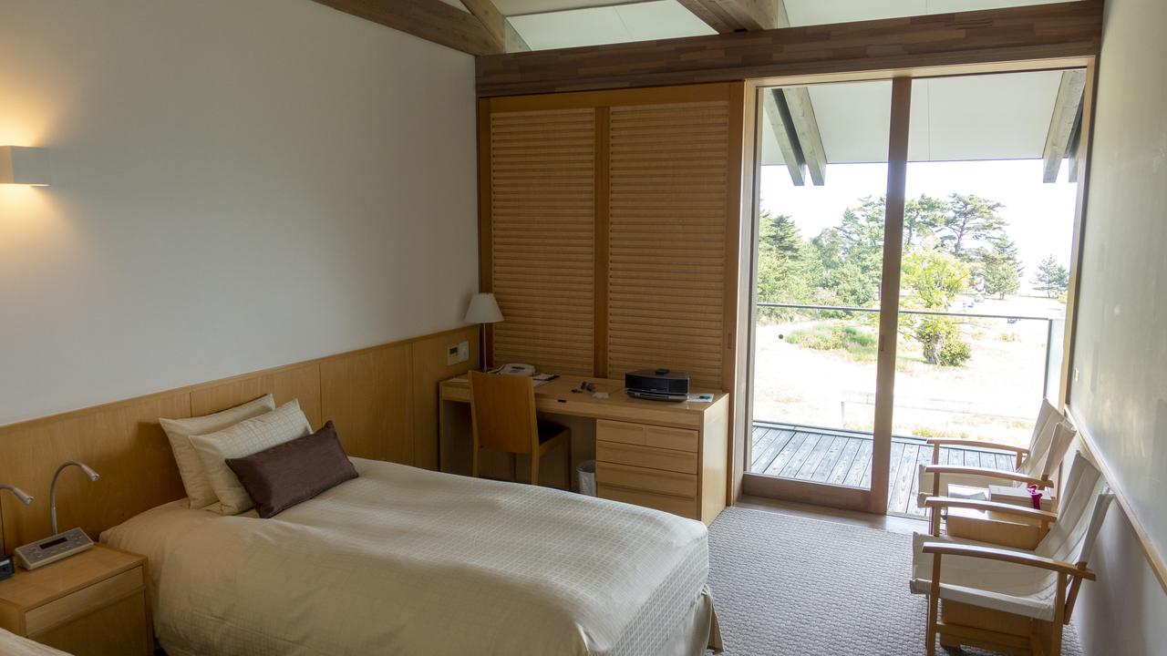 We cycled on around the island to find some lunch - there are a few restaurants and cafes dotted around Naoshima, but we found that many of them close between 2 and 5pm. Fortunately we found a place by the beach which sold a pretty basic but tasty bowl of noodles. As our lunch went down we took a stroll along the beach towards the Benesse House area of the island, with the ‘yellow pumpkin’ sitting majestically on a jetty out to sea. This area is restricted and you can only take bikes in if you are guests at the hotel. We checked in to one of the nicest hotel rooms I’ve ever stayed in (think Scandi minimalist chic), with its small balcony overlooking the garden and sea beyond.